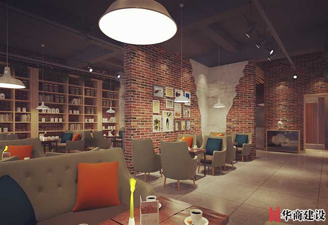 整個咖啡館室內(nèi)設(shè)計沿用了工業(yè)風的設(shè)計手法,氧化鐵的火磚是咖啡館室內(nèi)設(shè)計的一大亮點,象征著拼搏、激情,這樣的裝修方式幾乎運用于所有墻面,但在室內(nèi)柱子只是用水泥砂漿稍作處理,這樣使得室內(nèi)環(huán)境十分融洽,不多不少。