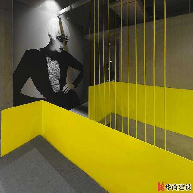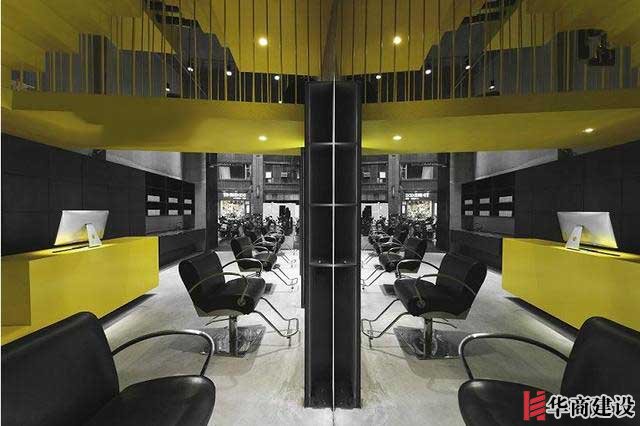經(jīng)典美發(fā)店裝修案例,黑黃顏色搭配層迭空間