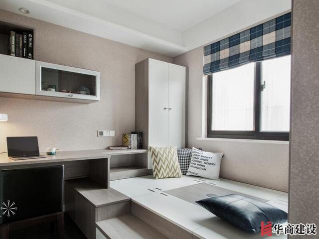 可以根據(jù)房間大小定制一個榻榻米+吊柜+書桌的設(shè)計,一間房不僅可以休息,而且還能當(dāng)做書房使用,上下打出的柜子。留下了更多的儲物空間,就連反季的衣物都有地方收納了!