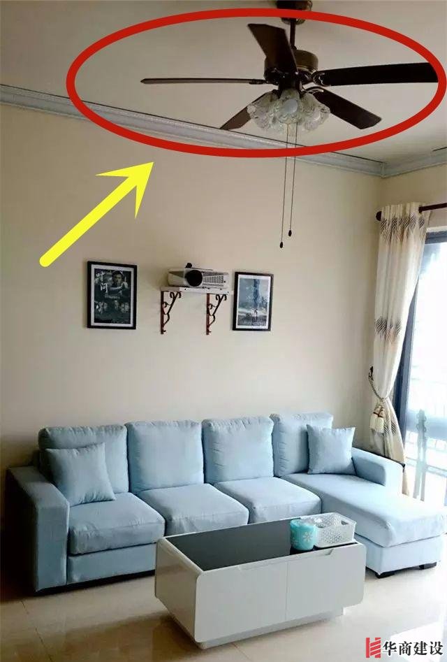 4、這種吊扇燈千萬(wàn)別裝裝!有一次見到覺得造型真別致,又是燈又是電扇!其實(shí)這個(gè)燈瓦數(shù)都特別小,客廳常年都是昏昏暗暗的!最麻煩還不是這個(gè),是掉灰!那個(gè)扇葉沾灰的能力簡(jiǎn)直無(wú)敵!天熱了你也不能直接開還得爬上去清灰!裝這個(gè)真的是腦殘!